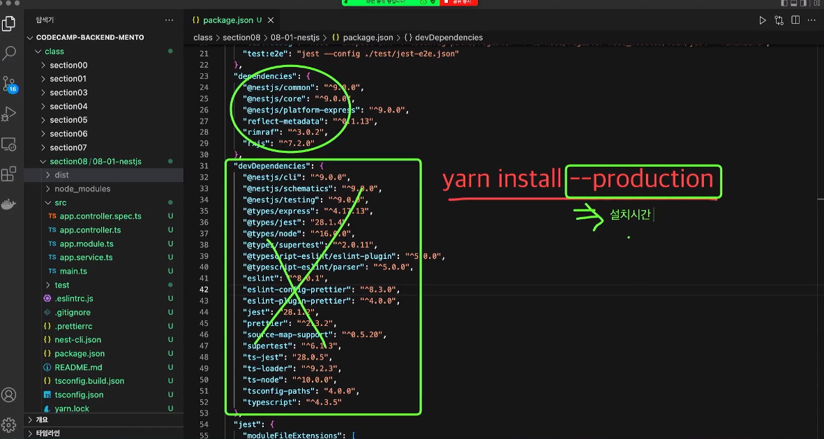 dependencies 로 가도 아무런 문제가 없지만 설치시간단축을 위해 dev로 옴김